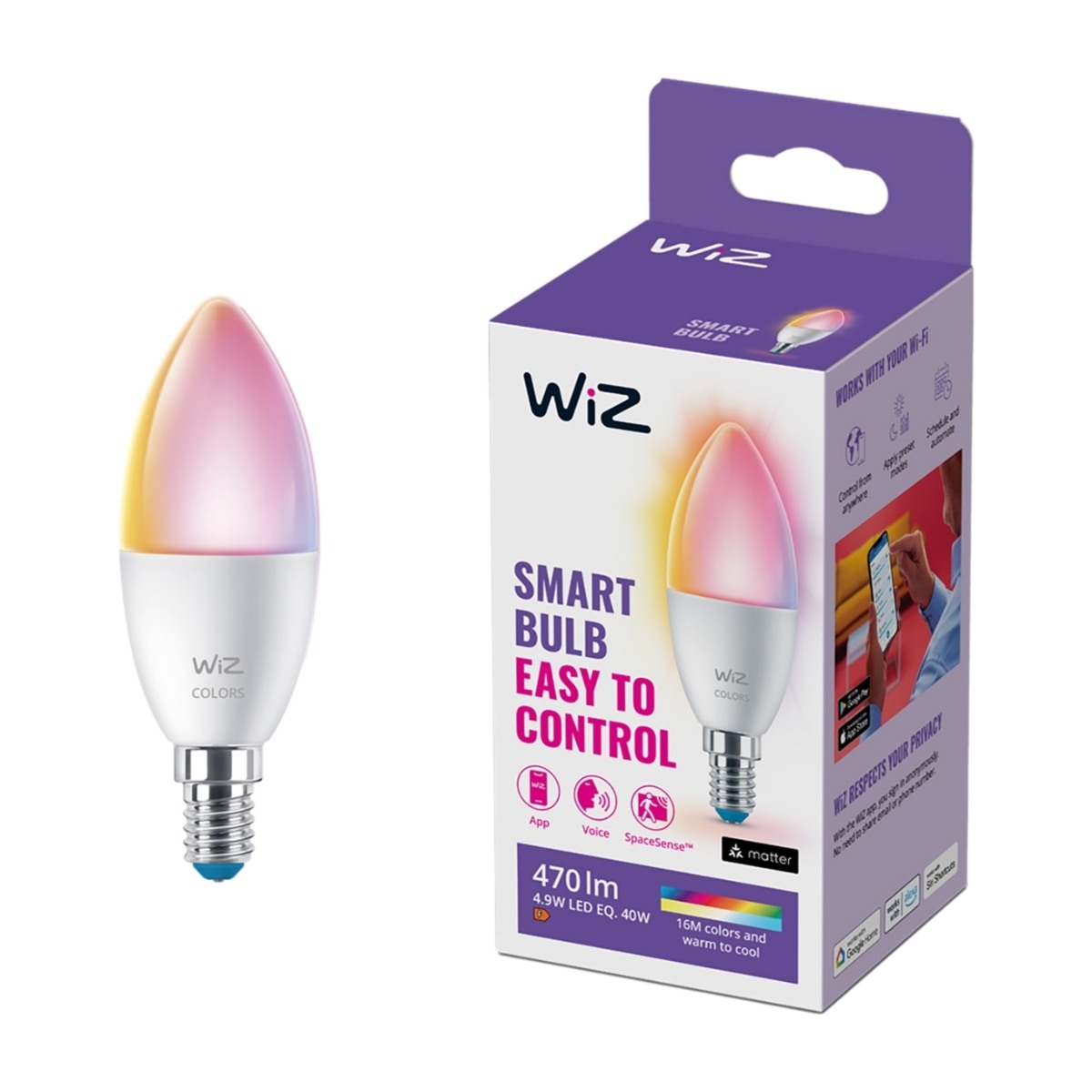 WiZ Wi-Fi BLE -älylamppu E14 C37 RGB