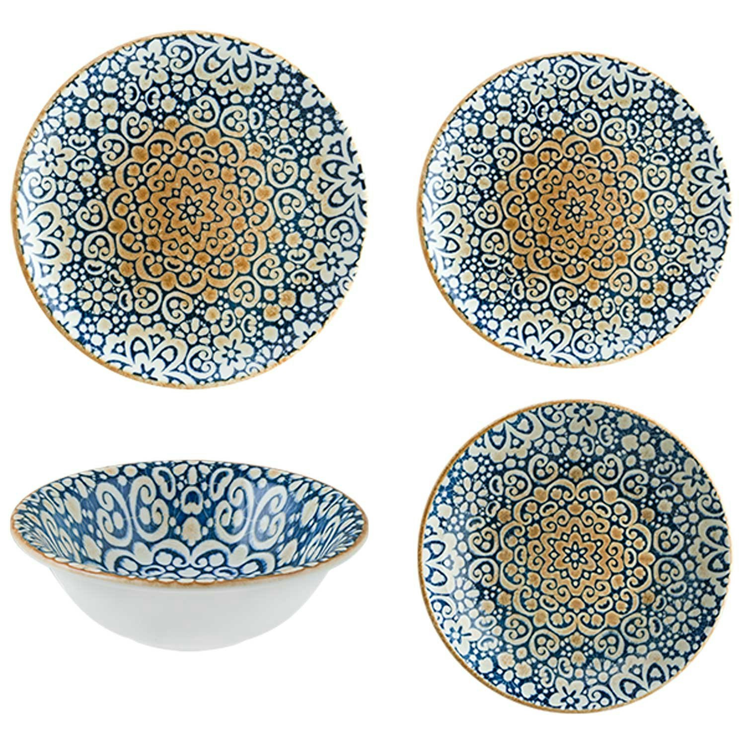 Astiasarja - DKD HOME DECOR - Sininen ja valkoinen - Posliini - 27 x 27 x 3 cm - Astianpesukoneen kestävä