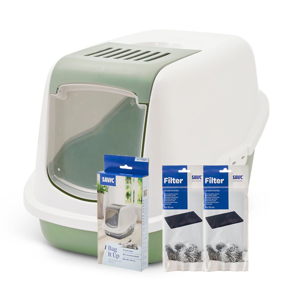 Savic Nestor - Aloituspakkaus: WC kasvitieteellinen vihreä/valkoinen + 2 suodatinta + 12 Bag it up -pussia