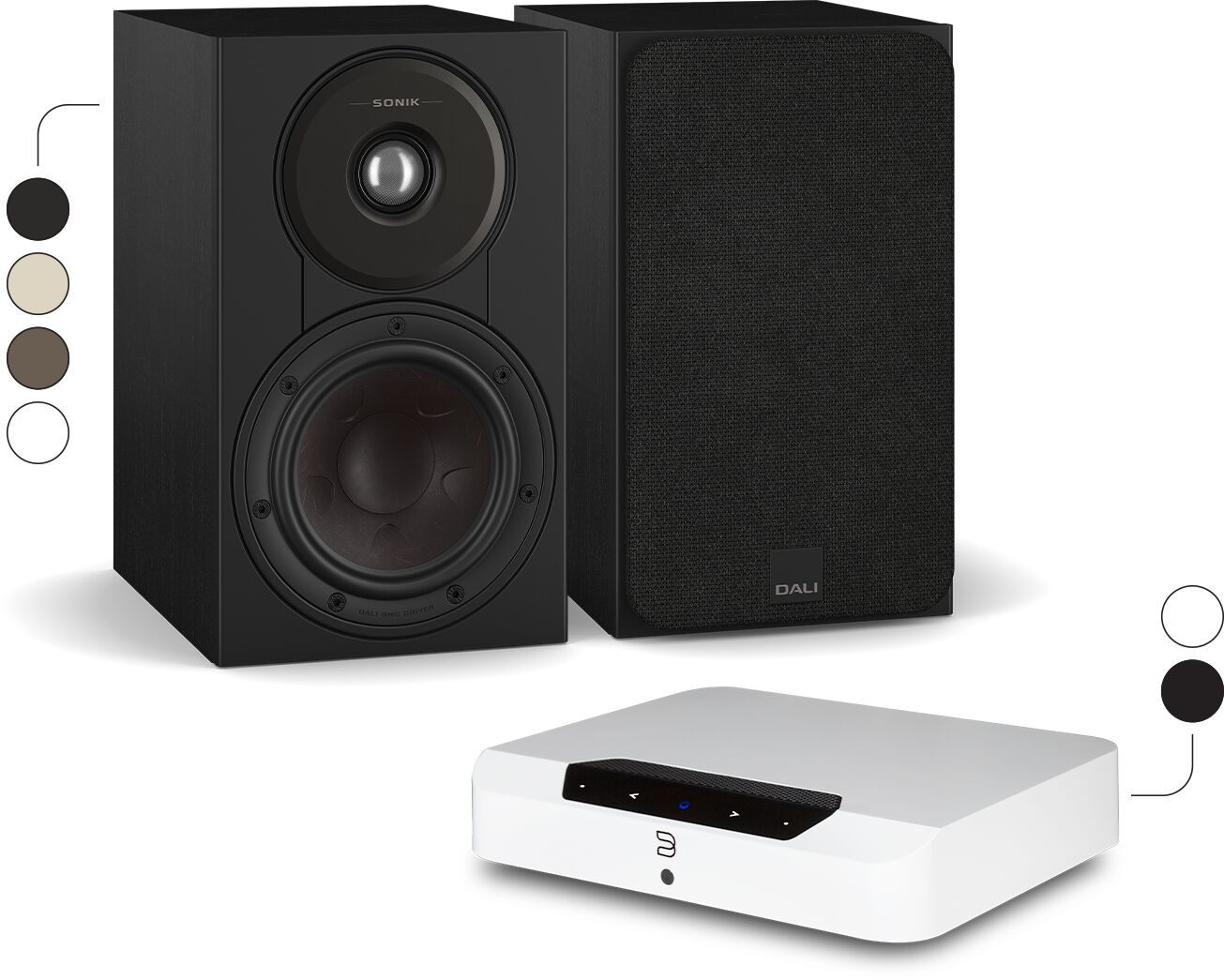 DALI SONIK 3 + Bluesound POWERNODE EDGE (N230) Stereojärjestelmä televisiolle - 5 vuoden jäsentakuu HiFi-tuotteille