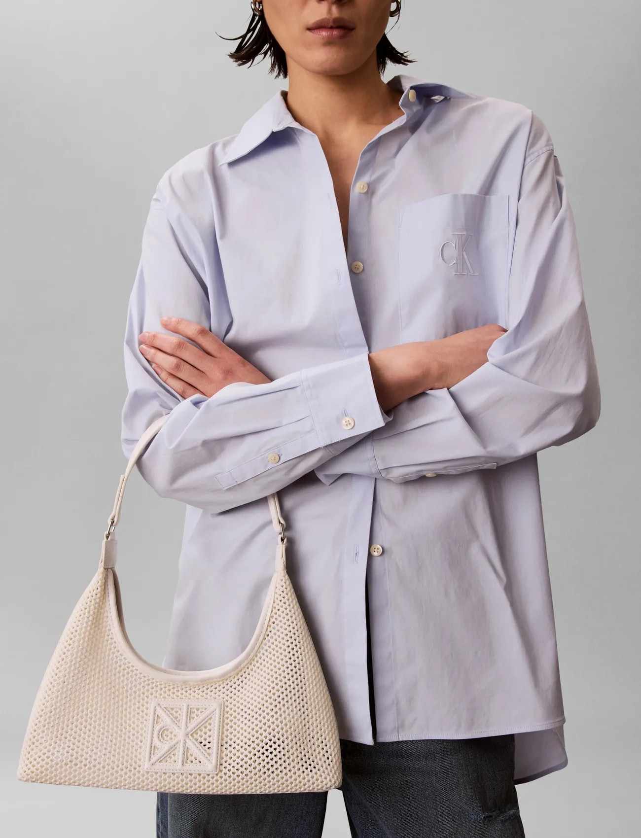 Calvin Klein Emblem Mesh Shoulder Bag - Cream - ONE SIZE