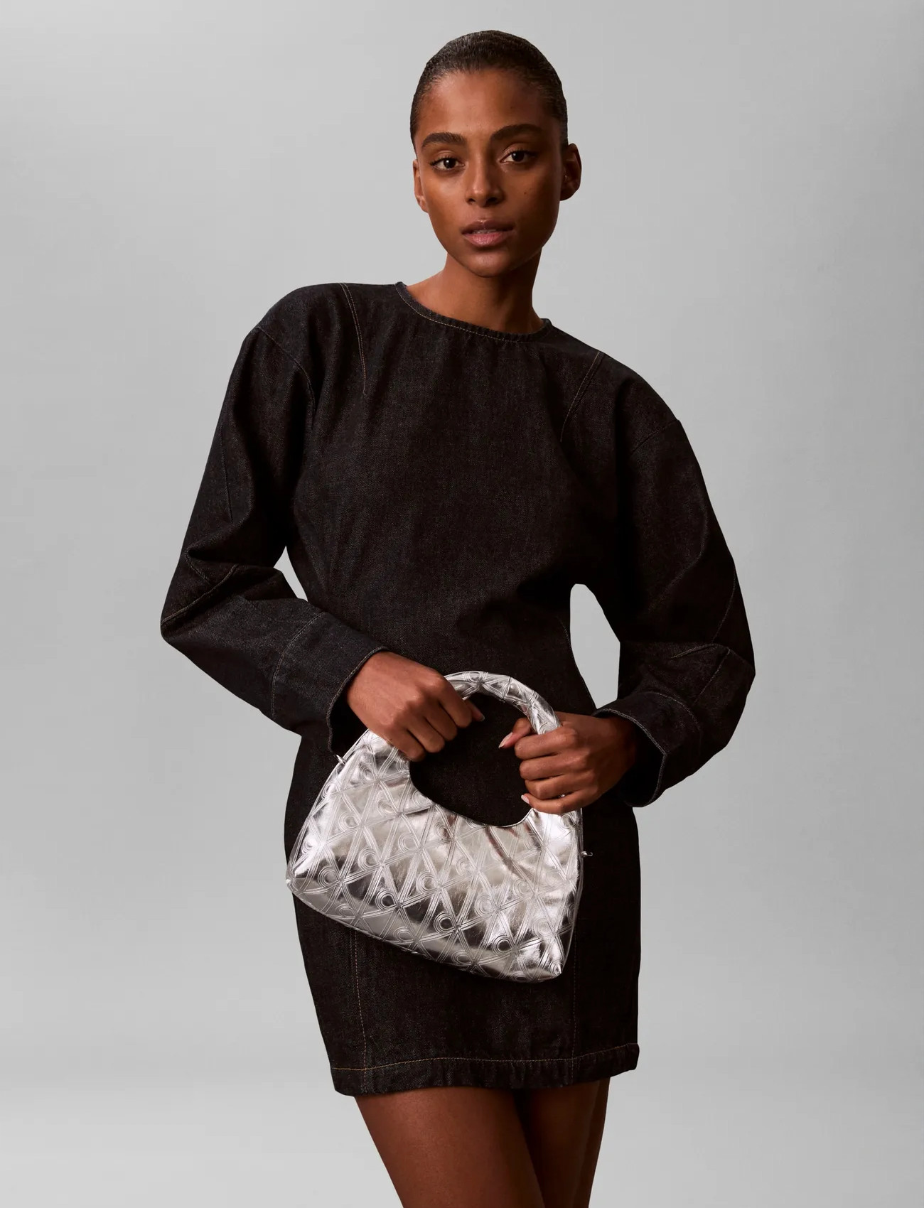 Calvin Klein Bold Ck Metallic Shoulder Bag - Silver - ONE SIZE