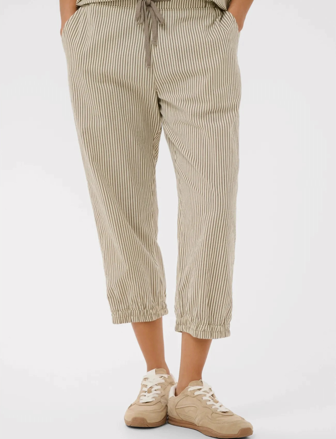 Kaffe Kanaya Striped Capri Pants - Beige - 34