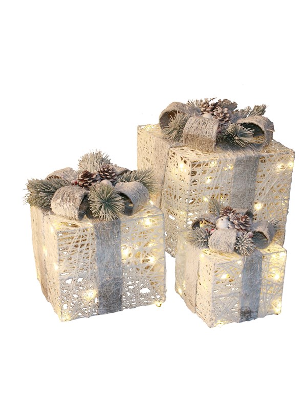 NORDIC WINTER Christmas gifts w/lights - set of 3 pcs - white