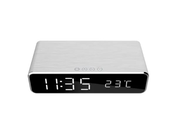 Gembird DAC-WPC-01-S, Digitaalinen herätyskello, Suorakulmio, Hopea, iPhone X/XS/XR, iPhone 8, Galaxy S8/S7/S6, LCD