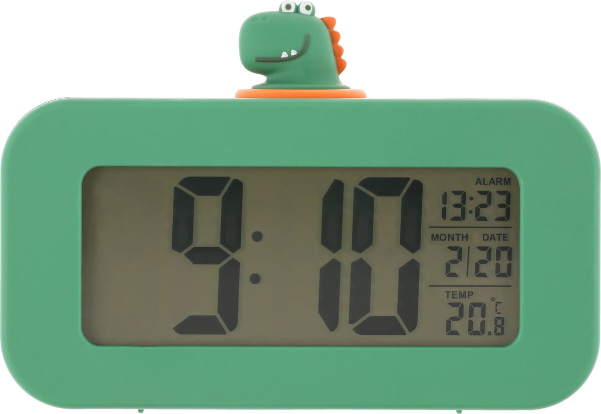 Digitaalinen herätyskello lapselle, dinosaurus, vihreä