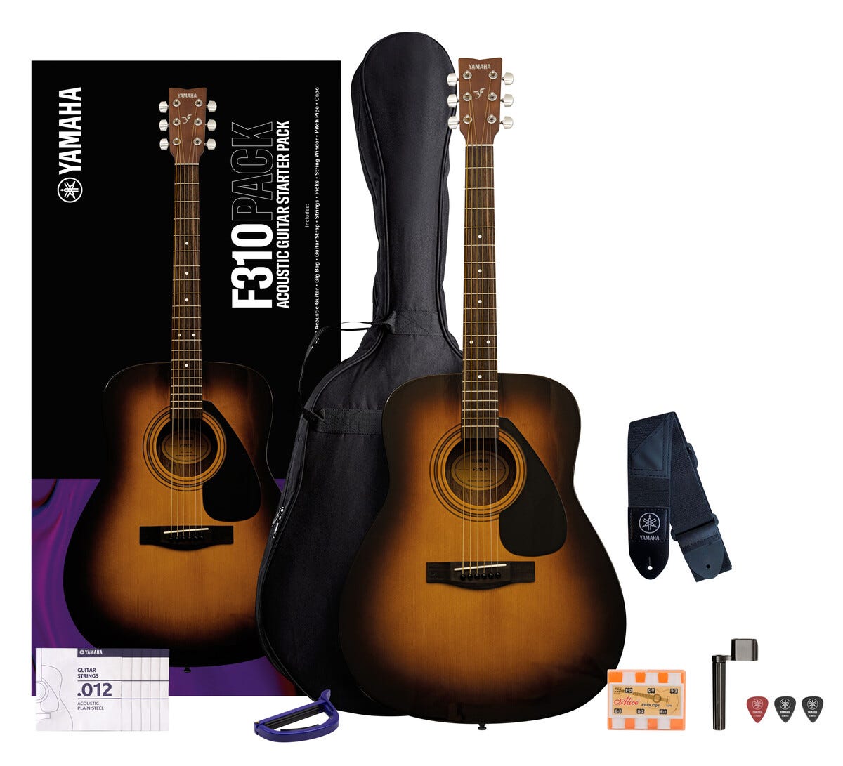 Yamaha F310P Kitara, jossa teräskielet, Western, aloituspaketti