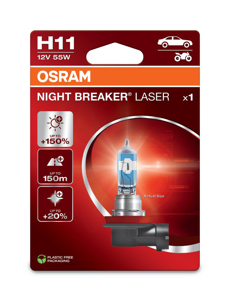 Halogeenilamppu H11 Night Breaker Laser Osram - VW - Toyota - Ford - Renault - Audi - Mercedes - BMW - Opel