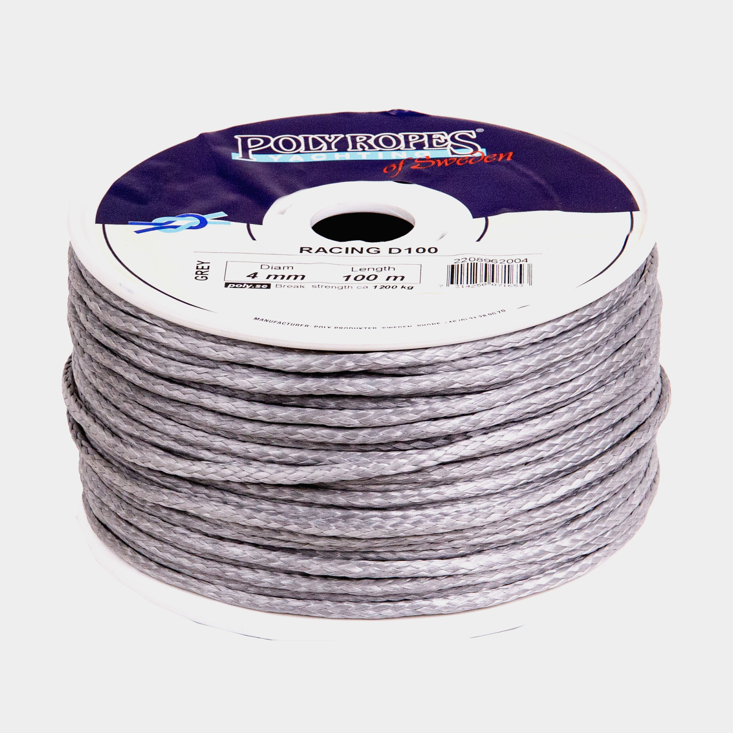 Dyneemaköysi / UHMWPE-köysi PolyRropes D100XTR, HMPE, Ø4 mm, 100 metriä, harmaa
