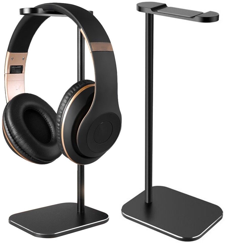 MaxMount Aluminum Headphone Stand with Tiltable Phone Holder - Musta kuulokete