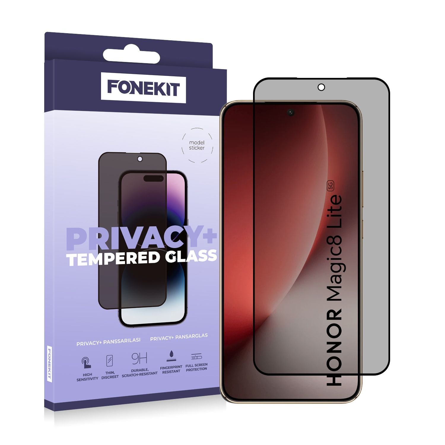 FoneKit Privacy+ Full Cover panssarilasi, Honor Magic 8 Lite/Honor X9D