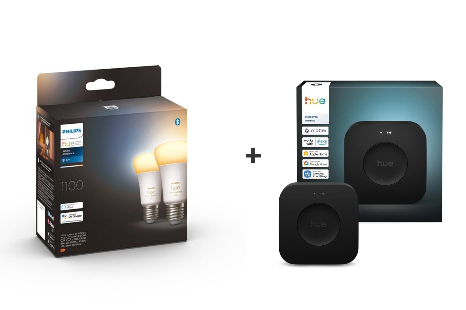 Philips Hue 2-pakkaus E27 – White Ambiance + Hue Bridge Pro