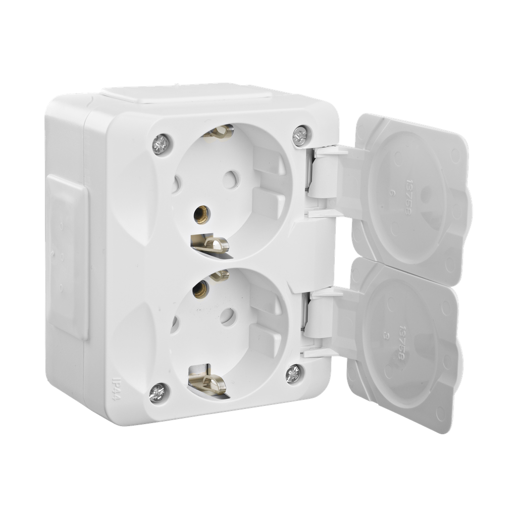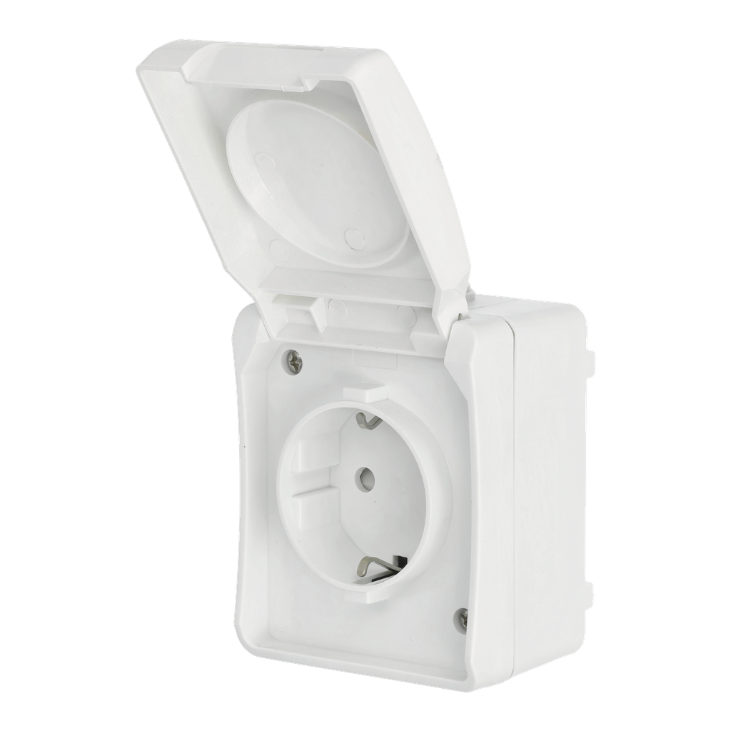 Schneider Electric Exxact WDE002294 Vägguttag 2-vägs, vit, IP44, utanpåliggande Lås, skruvanslutning