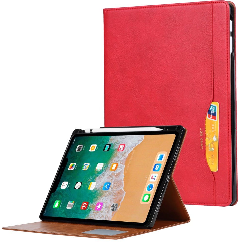 Trolsk Lompakkokotelo Nahkajäljitelmä Apple Pencil -paikalla (iPad mini 7/6) - Röd