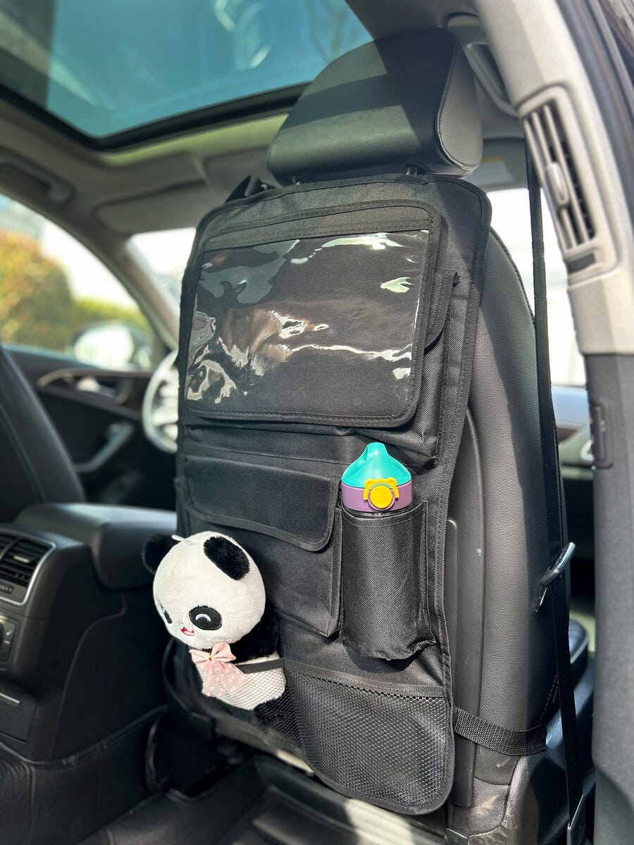 Istuinsuoja, potkusuoja autoon, säilytystaskuja