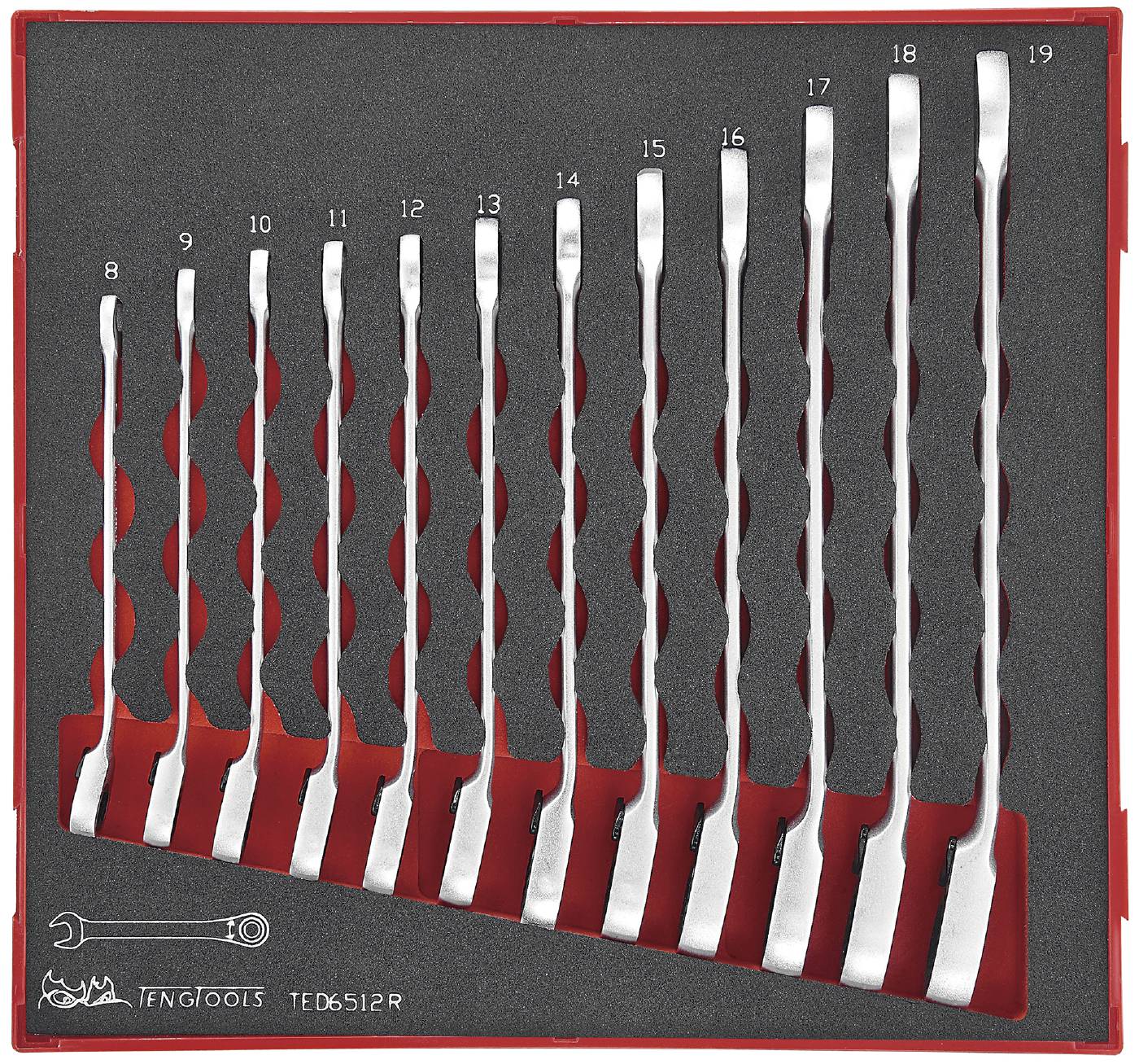 Teng Tools 12-osainen räikkätoiminen kiintolenkkiavainsarja. TED6512R