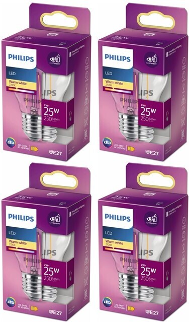 Philips LED Classic -koristelamppu, E27, 2700 K, 250lm, kirkaspintainen, 4 kpl tuotepaketti