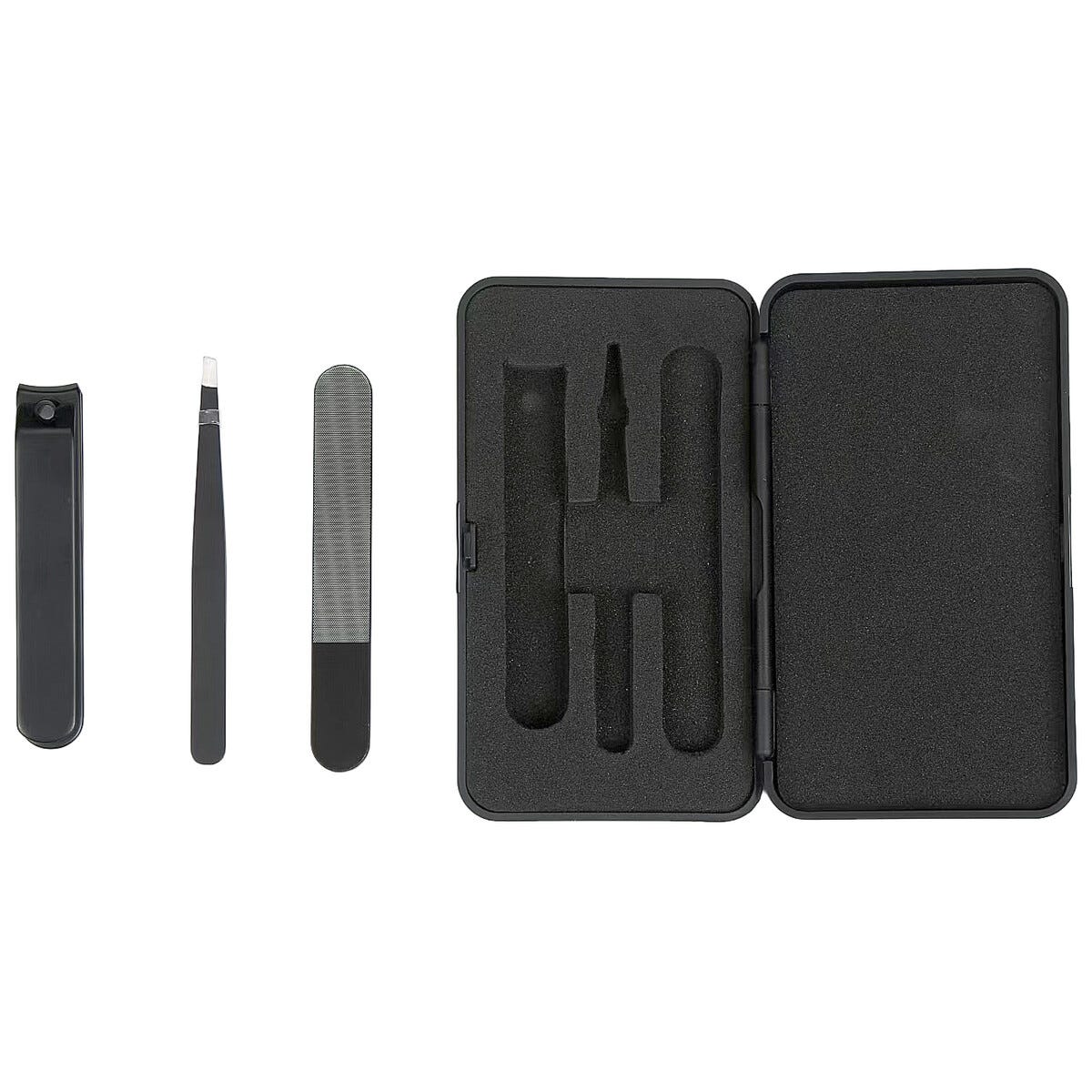 Matkakokoinen kynsienhoitosetti - kynsiviila, pinsetit ja kynsileikkuri kotelossa