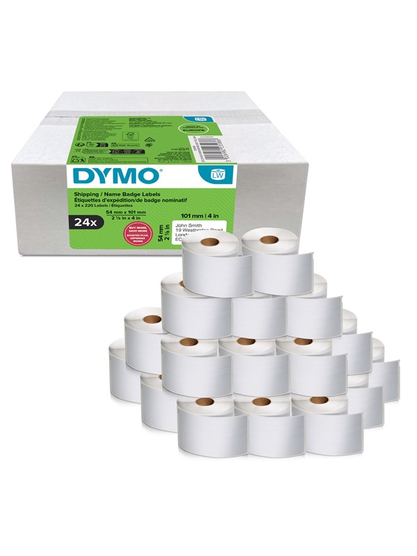 DYMO Authentic LabelWriter Large Shipping Labels/Name Badges | 54mm x 101mm | 24 Rolls of 220 Easy-Peel Labels (5.280 Count) | Self-Adhesive | for LabelWriter Label Makers