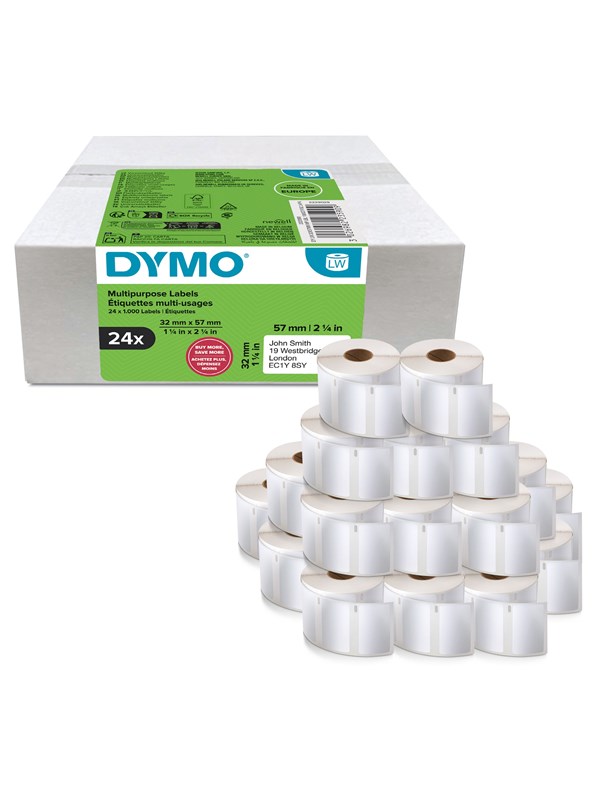 DYMO Authentic LabelWriter Multi-Purpose Labels | 32mm x 57mm | 24 Rolls of 1.000 Easy-Peel Labels (24.000 Count) | Self-Adhesive | for LabelWriter Label Makers