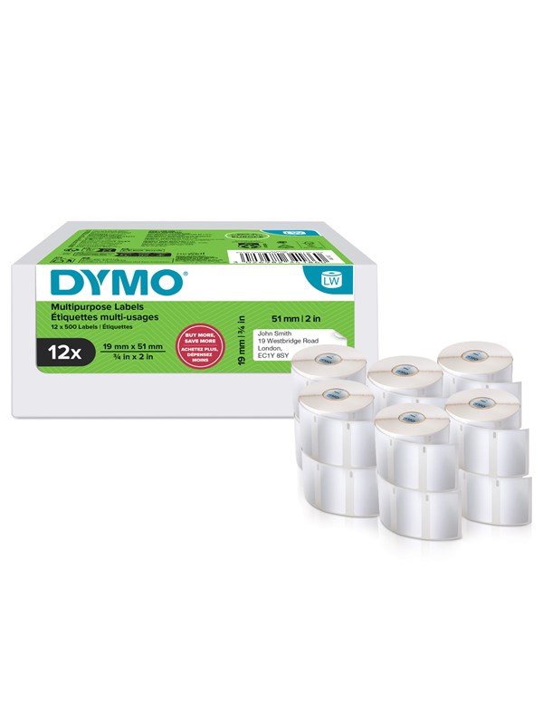 DYMO Authentic LabelWriter Small Multi-Purpose Labels | 19 mm x 51 mm | Self-Adhesive | 12 Rolls of 500 Easy-Peel Labels (6.000 Count) | for LabelWriter Label Makers | Made in Europe