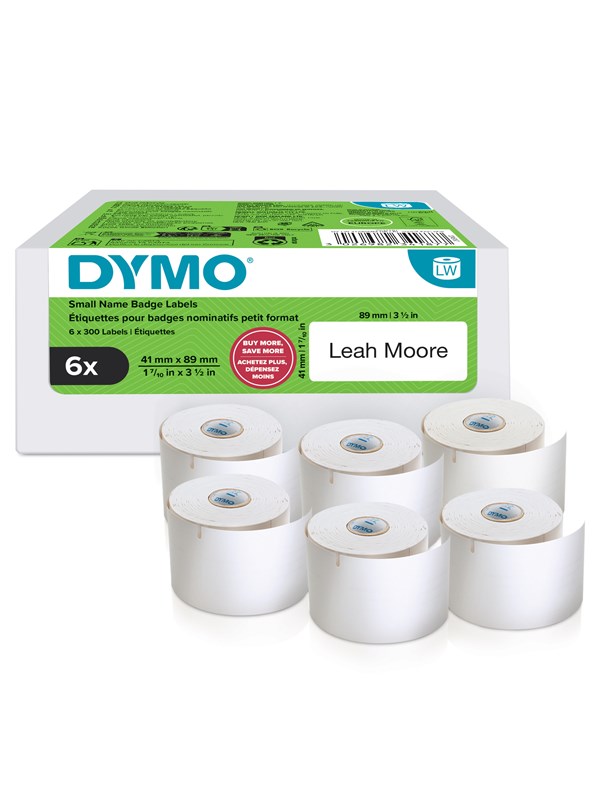 DYMO Authentic LabelWriter Small Name Badge Labels | 41 mm x 89 mm | Self-Adhesive | 6 Rolls of 300 Easy-Peel Labels (1.800 Count) | for LabelWriter Label Makers | Made in Europe