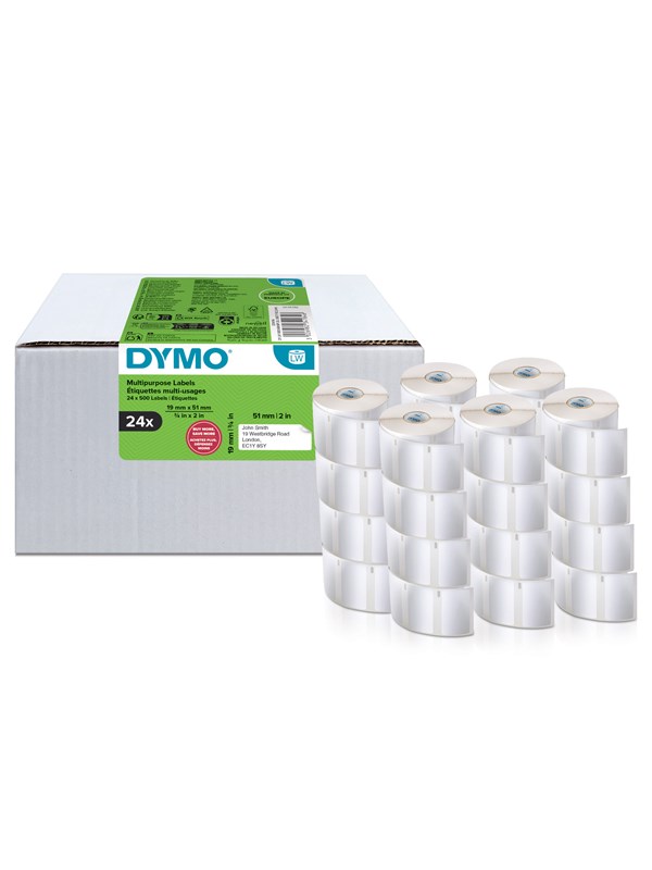DYMO Authentic LabelWriter Small Multi-Purpose Labels | 19 mm x 51 mm | Self-Adhesive | 24 Rolls of 500 Easy-Peel Labels (12.000 Count) | for LabelWriter Label Makers | Made in Europe