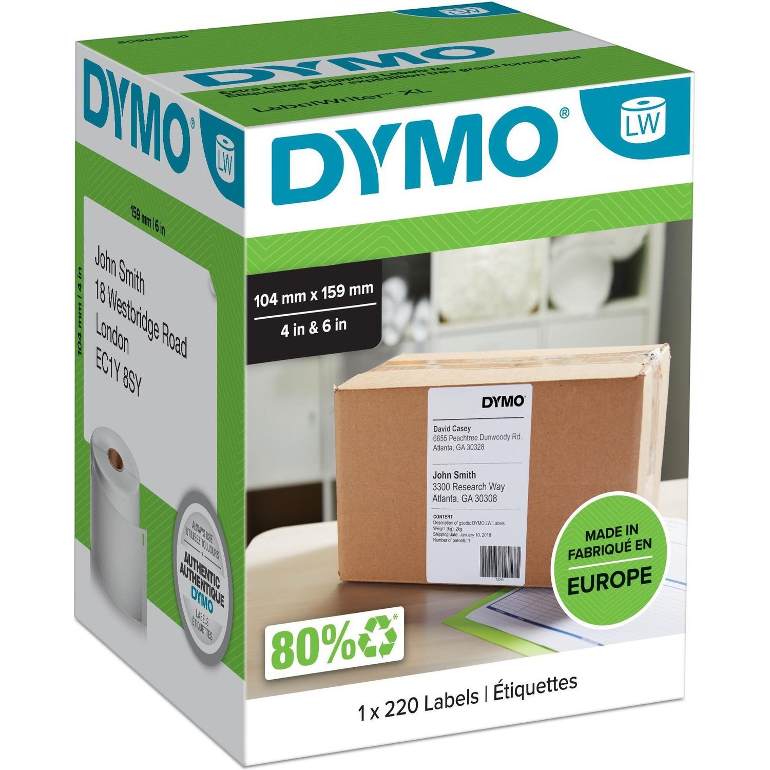 Dymo LabelWriter 4XL -lähetystarrat 104 mm x 159 mm, 220 tarraa, valkoinen