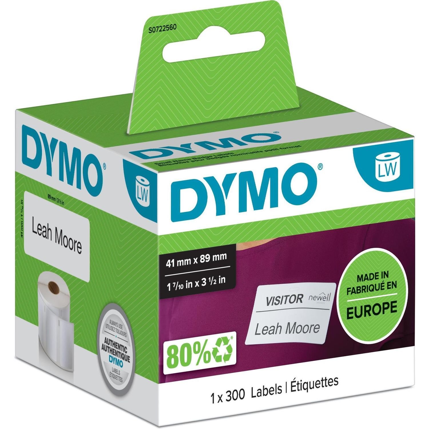 DYMO Authentic LabelWriter Small Name Badge Labels | 41 mm x 89 mm | Self-Adhesive | 12 Rolls of 300 Easy-Peel Labels (3.600 Count) | for LabelWriter Label Makers | Made in Europe