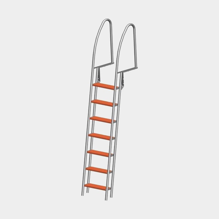 Laituritikkaat, ruostumaton teräs, 7 askelmaa, 256 cm, 49.2 cm