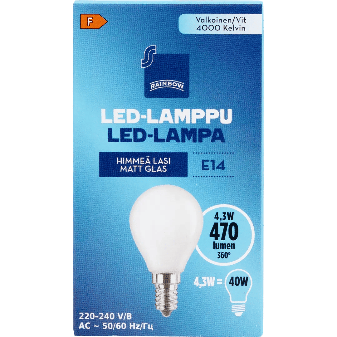 Rainbow LED-lamppu 4W E14 4000K 470lm huurrettu lasi