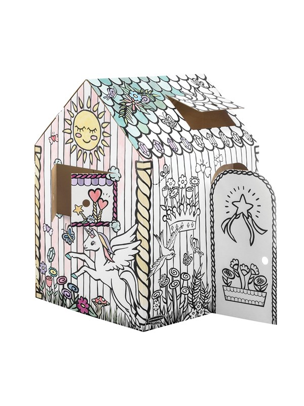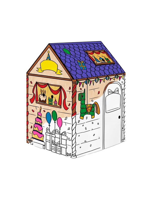 Pahvinen väritettävä leikkimökki