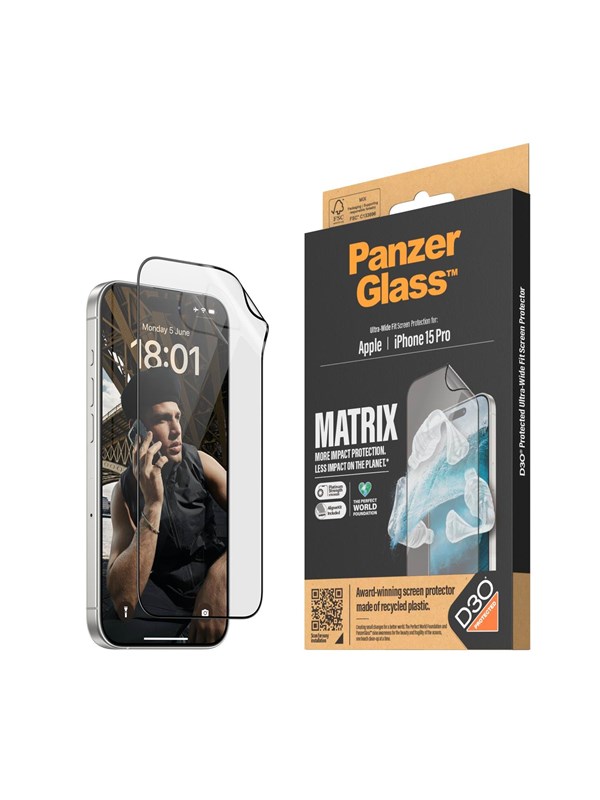 PanzerGlass - ECO MATRIX Screen Protector with D3O® iPhone 15 - Ultra-Wide Fit w. AlignerKit