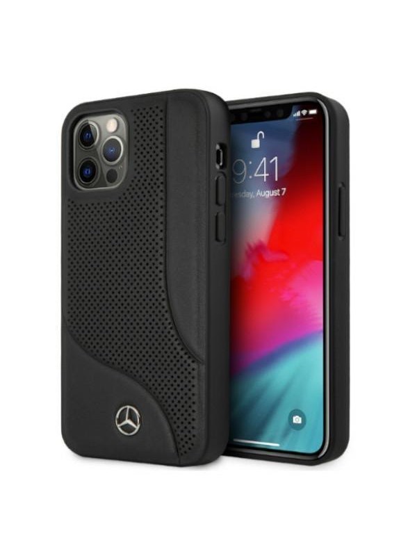 Mercedes Leather Perforated Area Case for iPhone 12 Pro Max - Black