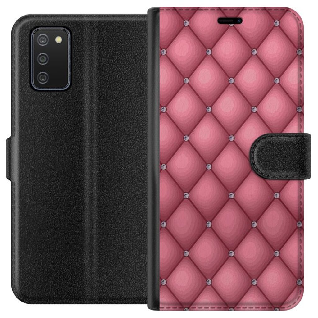 Samsung Galaxy A02s Musta Lompakkokotelo Exklusivt Rosa Mönster