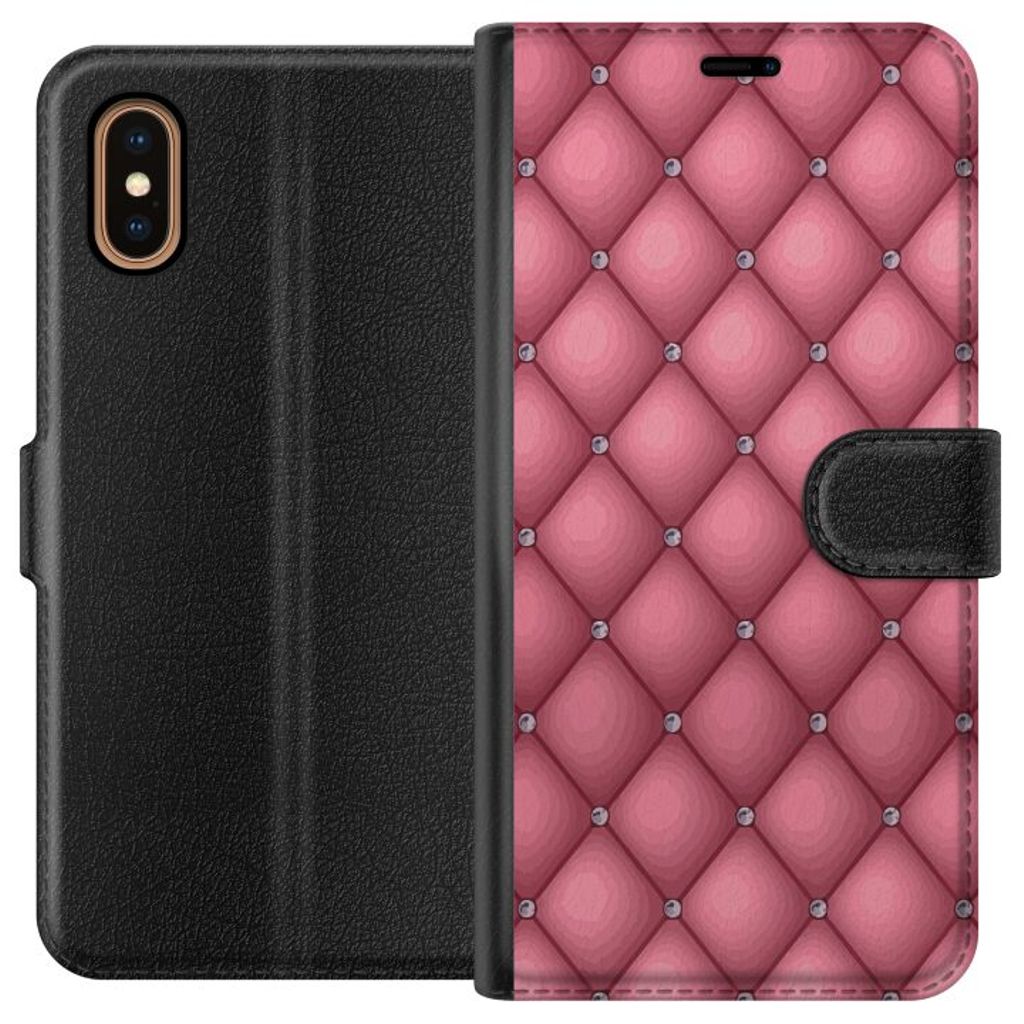 Apple iPhone XS Max Musta Lompakkokotelo Exklusivt Rosa Mönster