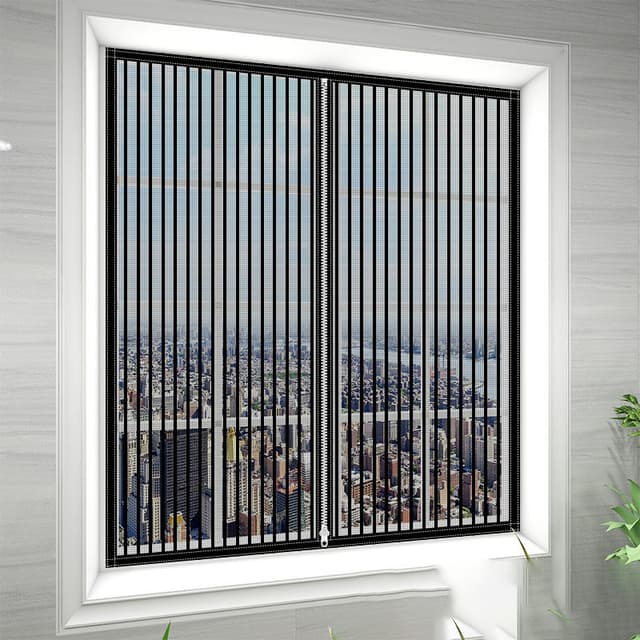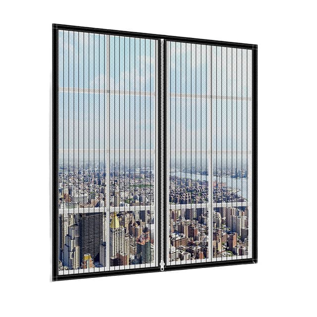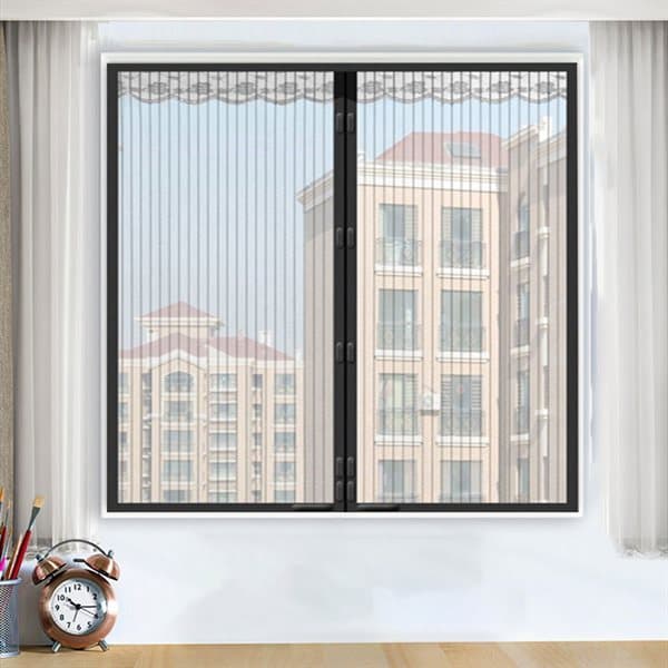 Magneettinen hyttysverkko ikkunoille, 130 x 150 cm, magneettinen ikkuna-oviverho, automaattinen ja irrotettava sulkeutuminen, tarra mukana, musta