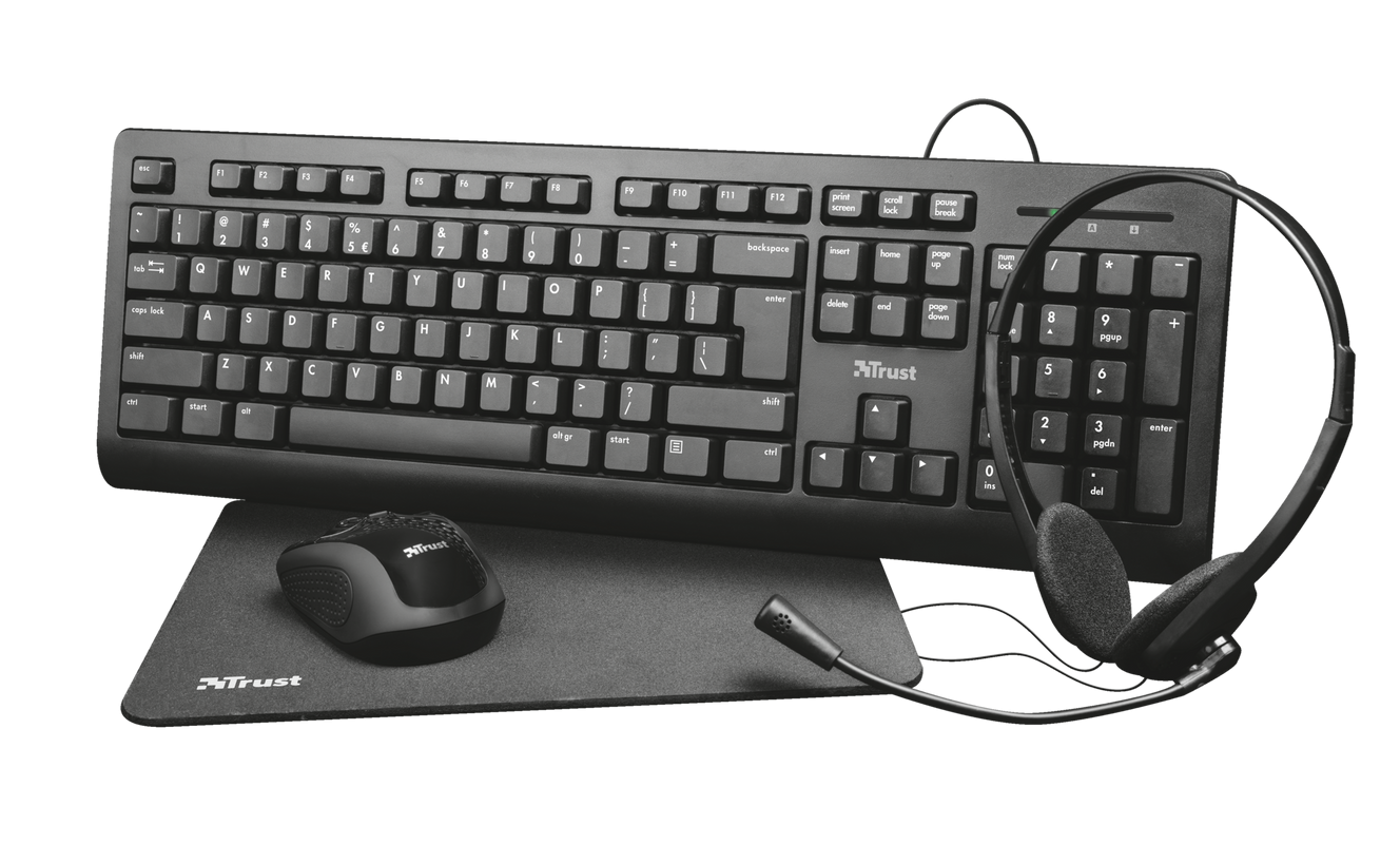 Trust Primo Näppäimistö, Langaton Hiiri, Kuulokkeet ja Hiirimatto