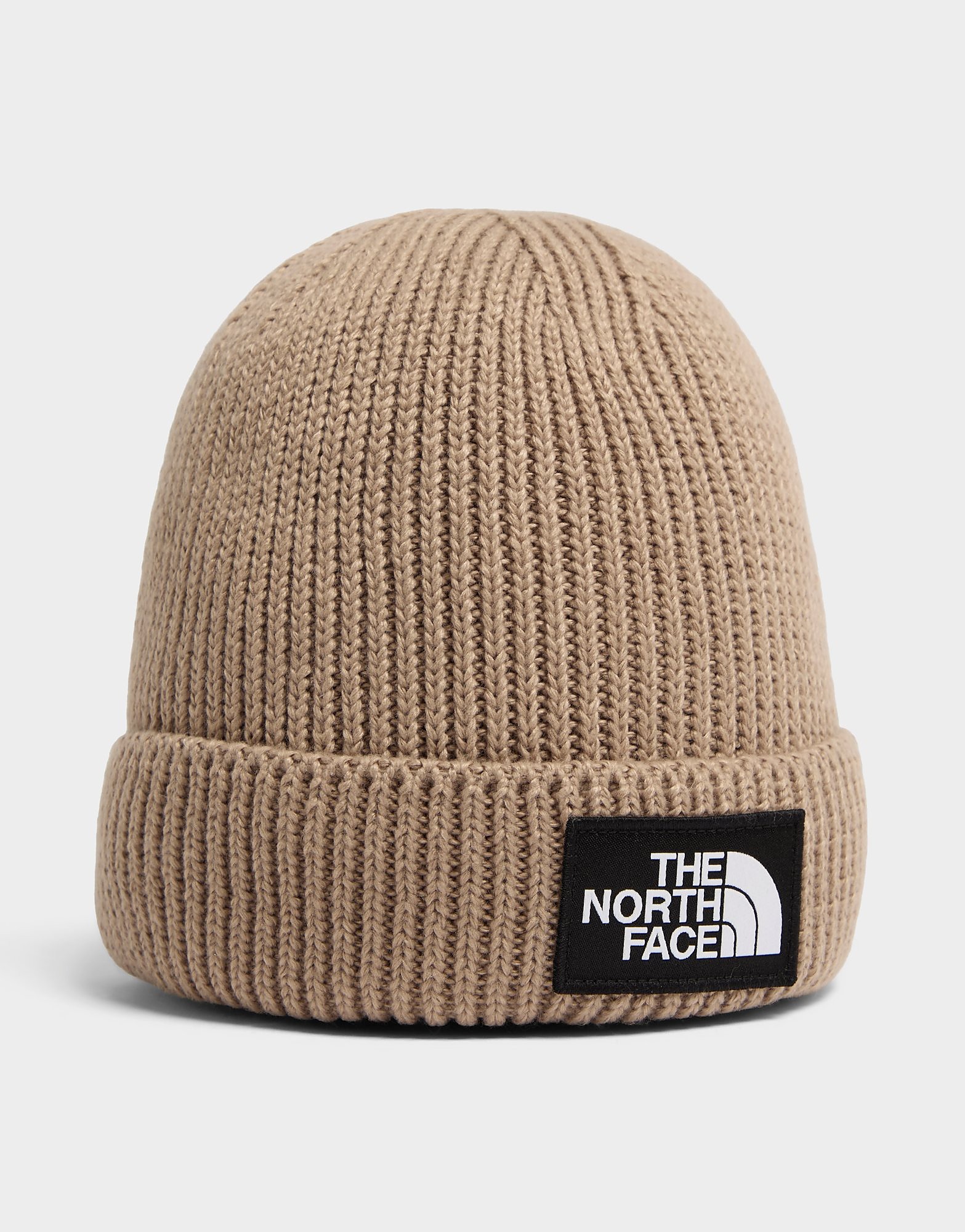 The North Face Logo Box Cuffed Beanie Hat, beige