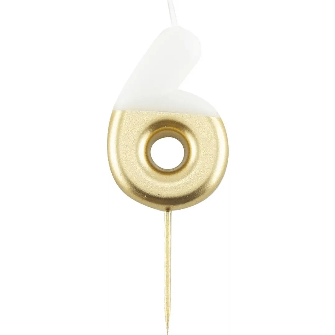 Kynttilä numero 6 valko-kultainen