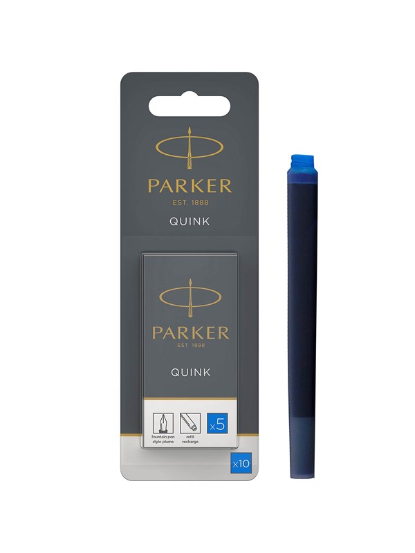 Parker Fountain Pen Ink Refill Cartridges | Long | Blue QUINK Ink | 10 Count (Blister)