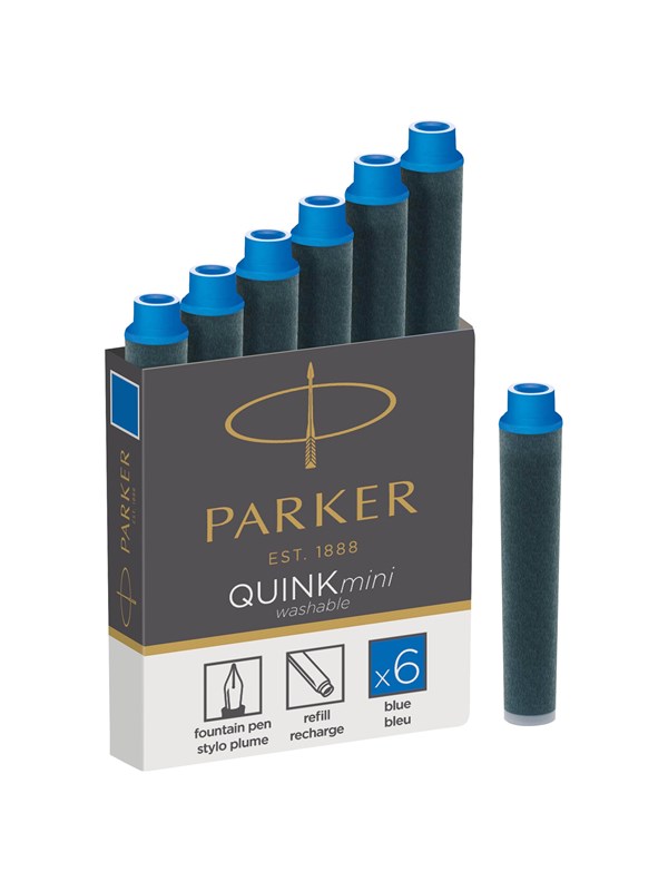 Parker Mini Fountain Pen Ink Refill Cartridges | Blue QUINK Ink | 6 Count