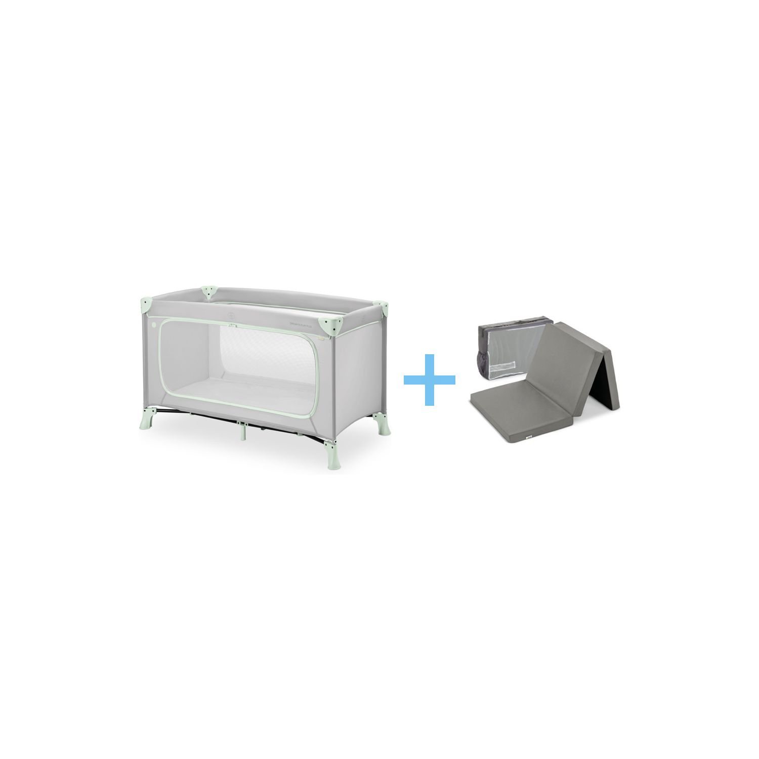 Hauck Dream N Play Plus matkasänky, dusty mint + Hauck Sleeper patja, 60 x 120 cm, Grey