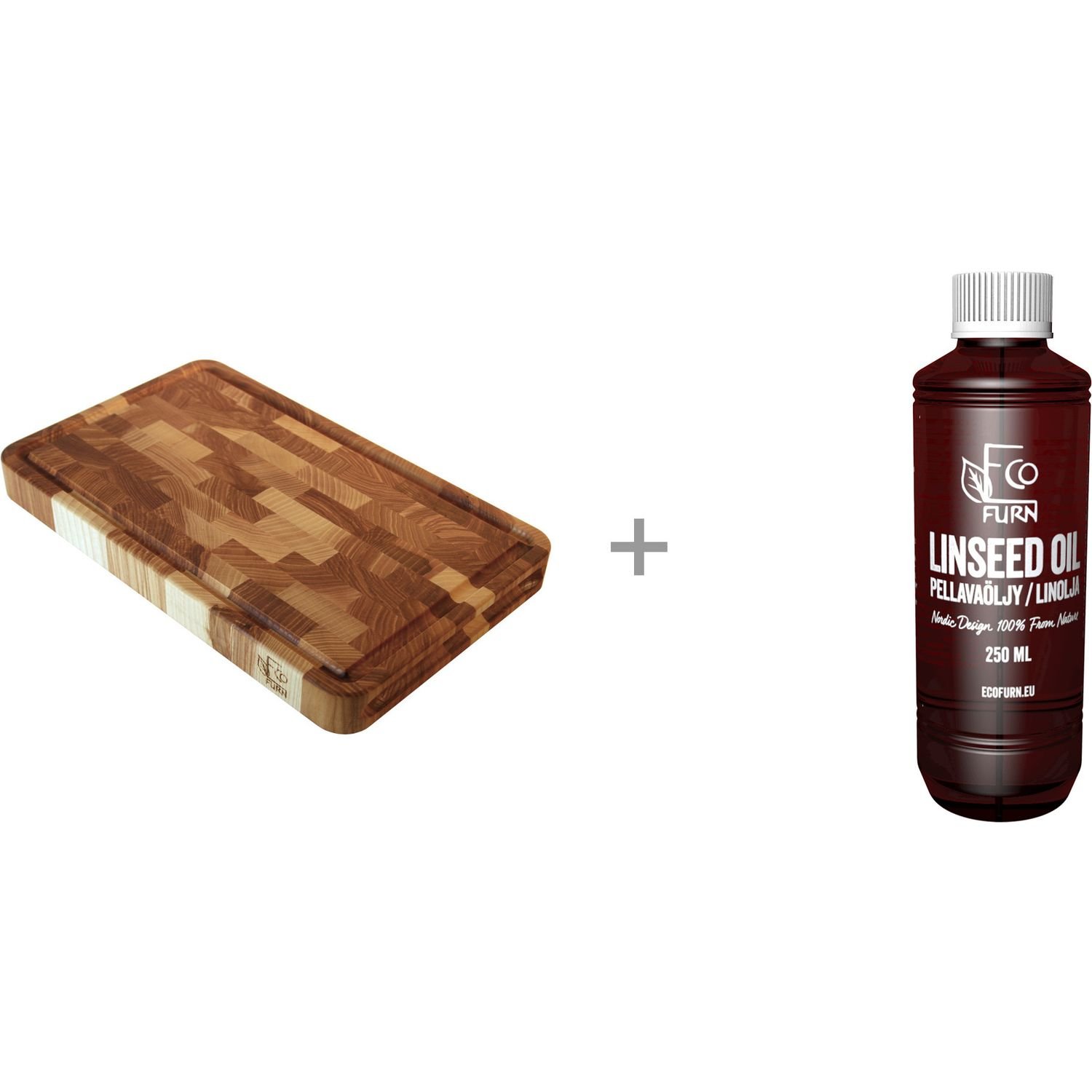 EcoFurn leikkuulauta, 40 x 25 cm, saarni + pellavaöljy -säästöpaketti