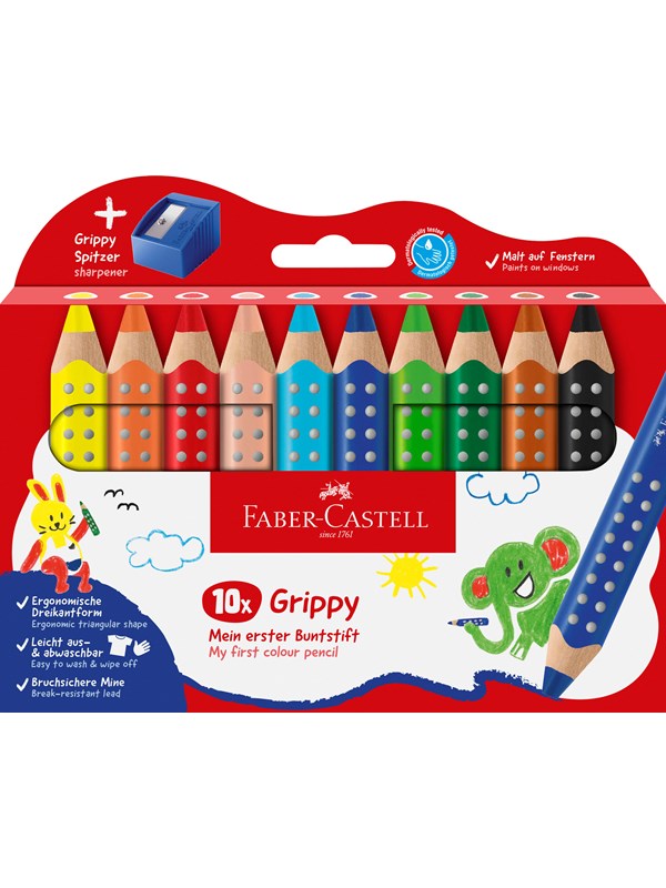 Faber-Castell - Colour Pencil Grippy Set of 10 with Sharpener (110636)