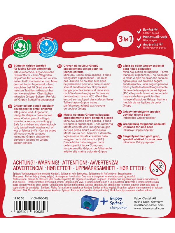 Faber-Castell Colour pencil Grippy 6pcs with sharpener