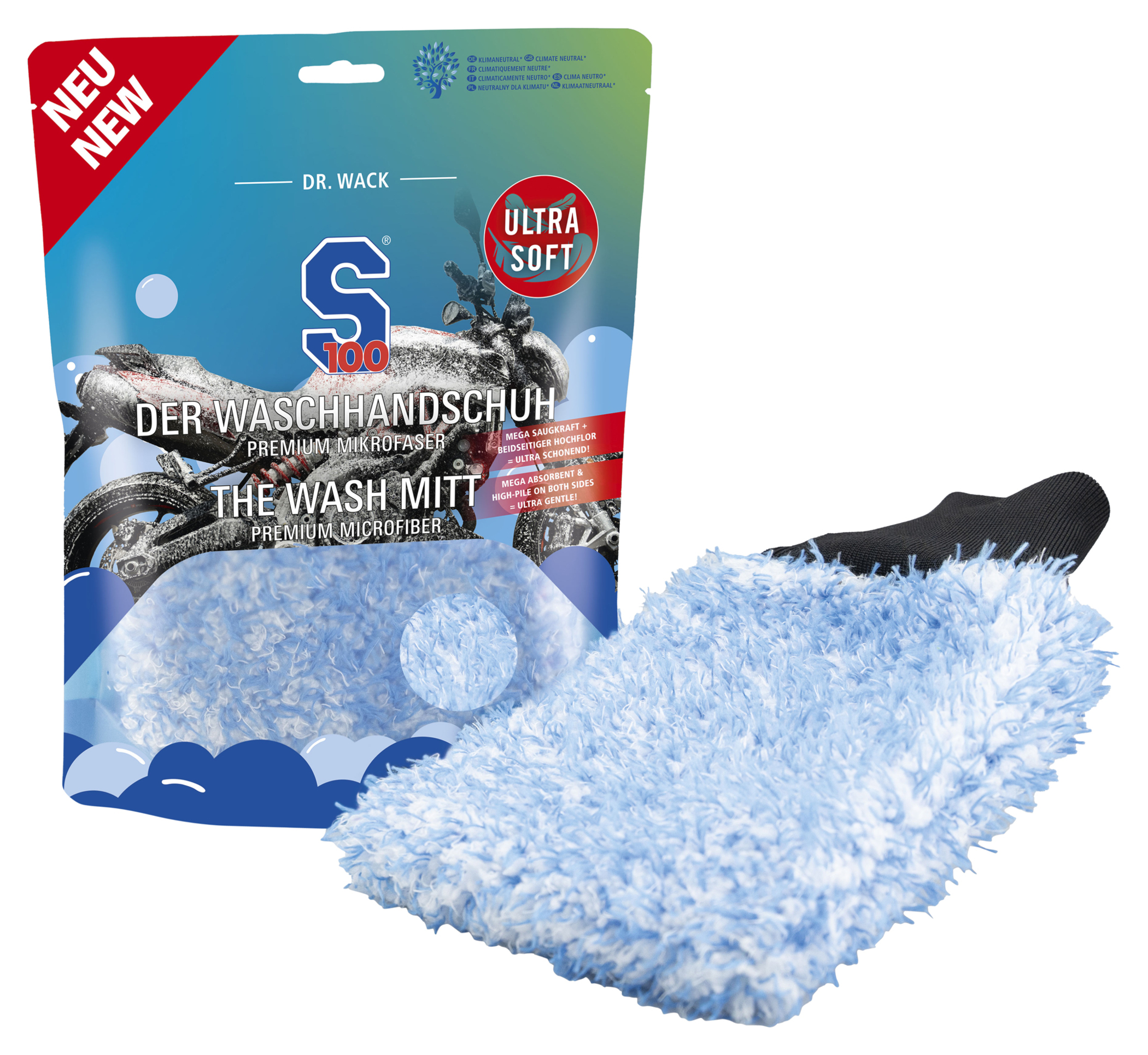 Dr. Wack - F100 polkupyörän pesukinnas - premium-mikrokuitu I erittäin pehmeä mikrokuitukäsine I vahva imu I korkealaatuinen polkupyörän puhdistus