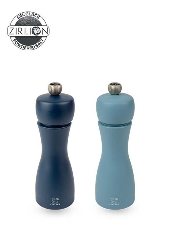 Peugeot Tahiti duo Set of Manual Salt and Pepper Mills in Wood Midnight Blue & Azure Blue 15cm