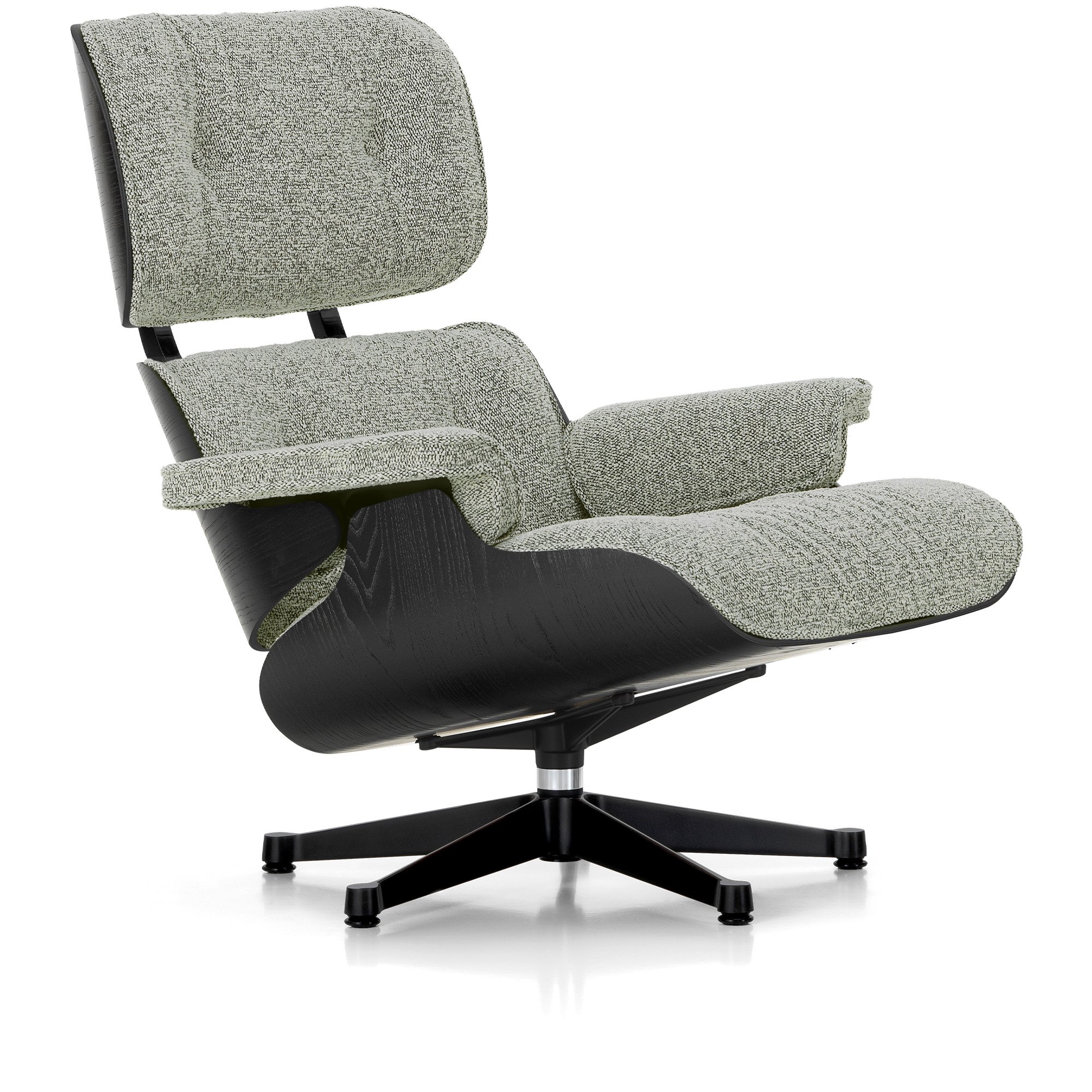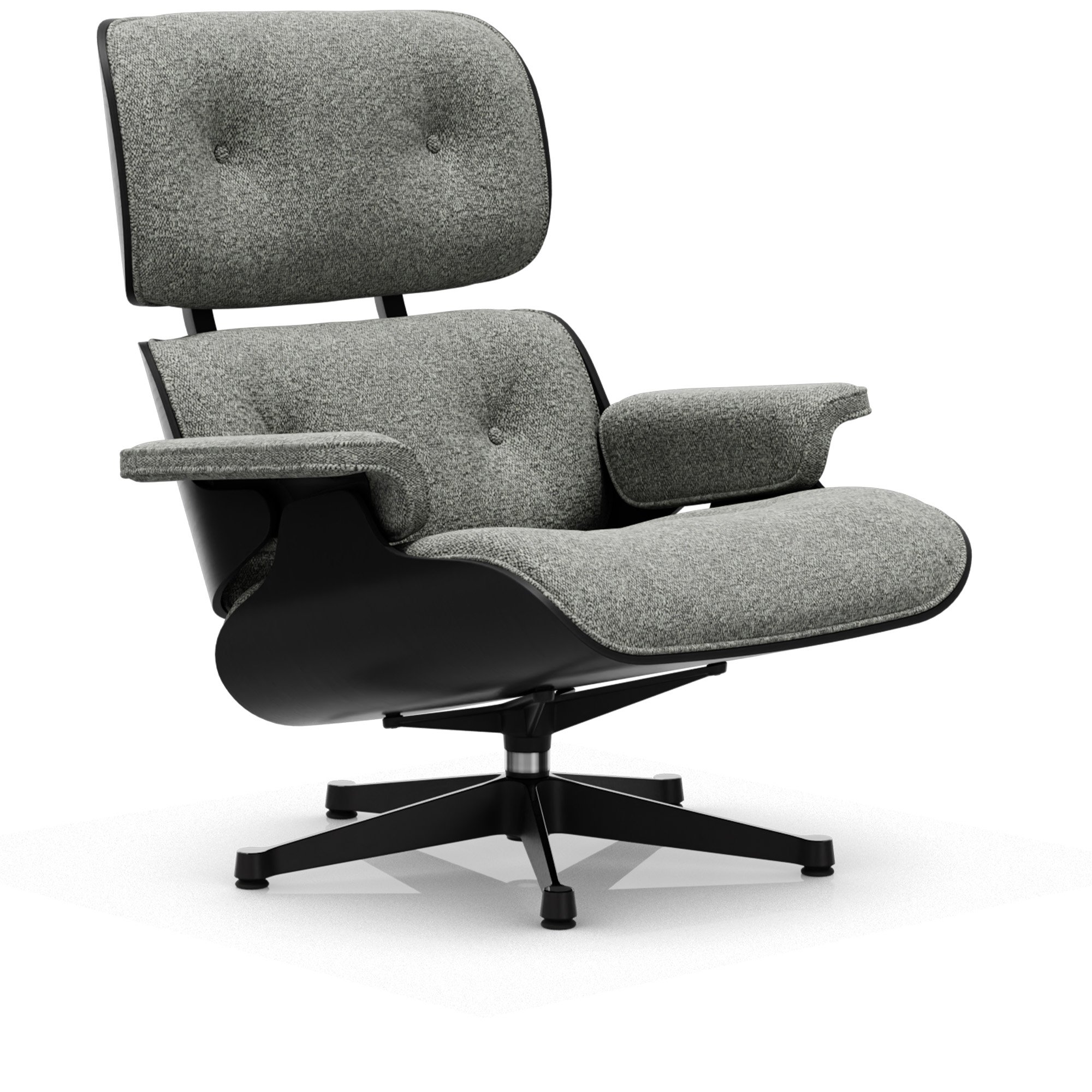 Vitra - Eames Lounge Chair Black Chestnut Nubia Salt’N Pepper 10 Polished Aluminium/Deep Black - Nojatuolit - Charles & Ray Eames - Nahka/Metalli/Puu