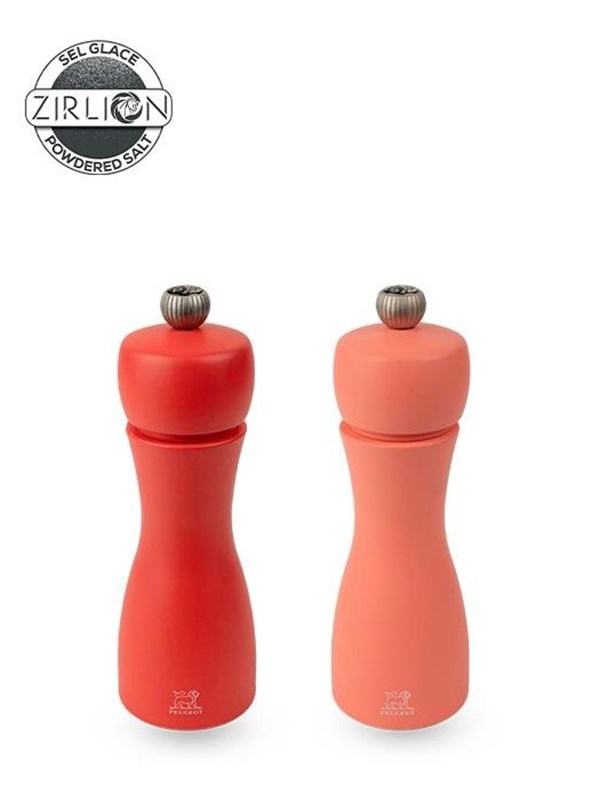 Peugeot Tahiti duo Set of Manual Salt and Pepper Mills in Wood Brick Red & Flame Red 15cm